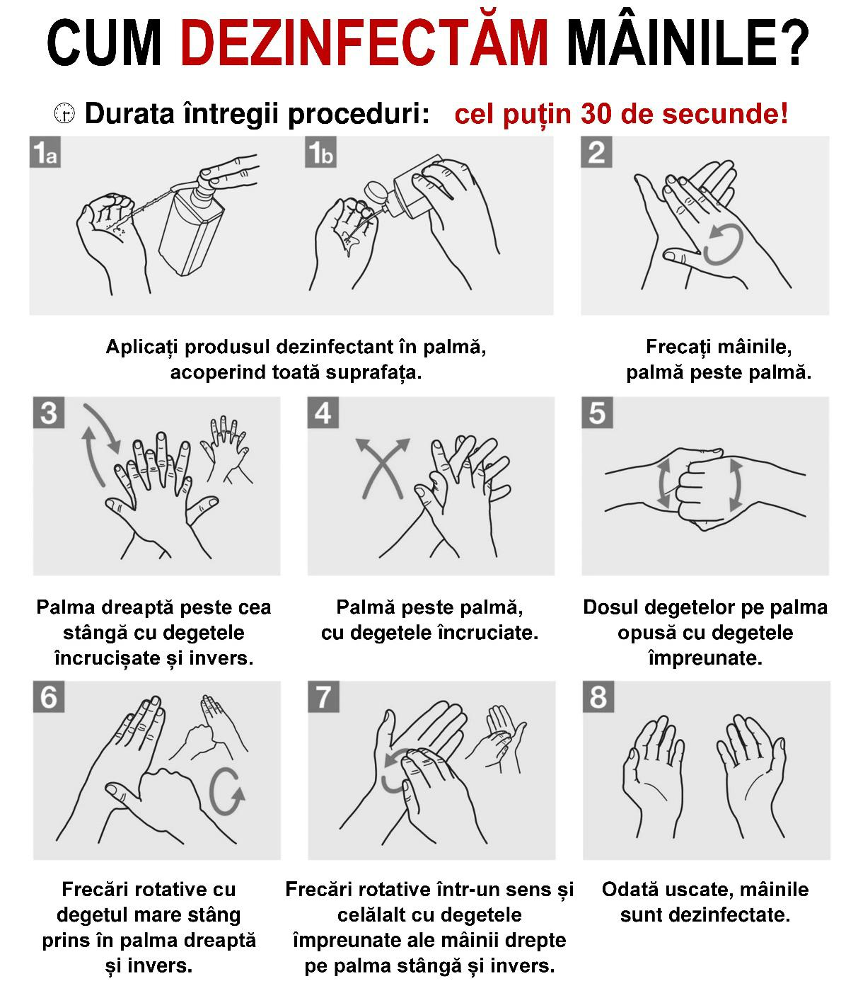 Mâinile se spală cu apă și săpun cel puțin 20 de secunde. Dacă nu există apă și săpun, puteți folosi un dezinfectant pentru mâini pe bază de alcool de 60%.